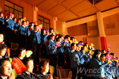 瀏覽量:5801 4月25日晚,由80名新安化工員工組成的合唱團(tuán),身穿新安藍(lán)工作服,在體育場(chǎng)內(nèi)參加建德市萬(wàn)名職工唱紅歌的活動(dòng),放聲高唱《東方紅》、《山丹丹花開(kāi)紅艷艷》和《歌唱祖國(guó)》等紅色歌曲,以此來(lái)慶祝“五一”勞動(dòng)節(jié)和即將到來(lái)的建黨90周年大慶。在活動(dòng)中,公司員工何亮成為晚會(huì)主持人之一,與其他五名主持人一起為全市勞動(dòng)模范和職工代表主持了一場(chǎng)精彩的文藝演出。