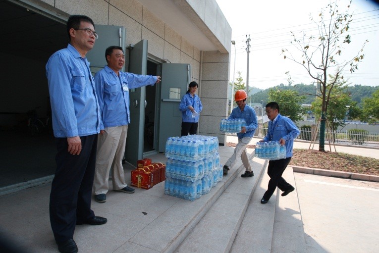 此次高溫慰問是集團總部黨委組織的。集團總部黨委75名黨員自發捐款近六千元,購買了近40箱加多寶、100箱鹽汽水,給堅守一線作業的員工送上一份降溫飲料,帶去一份清涼。在草甘膦搬遷項目組,項目組胡江廠長表示感謝。他說,一線員工會將感動化為行動,盡早完成各項調試工作,早日生產出優質的草甘膦產品。